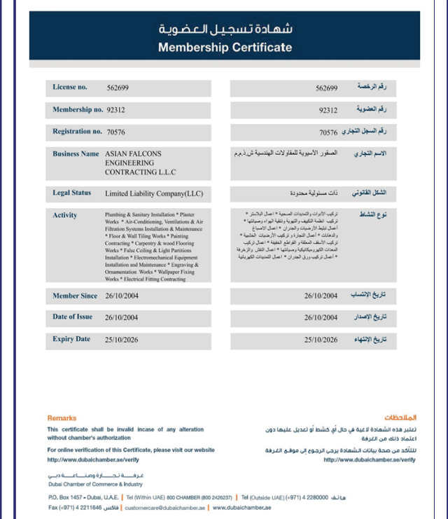ASIAN FALCONS ENGINEERING CONTRACTING L.L.C.